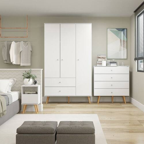 Conteúdo da Embalagem: 01 Kit Completo para Quarto Guarda Roupa Cômoda Mesa Retrô Menu Móveis