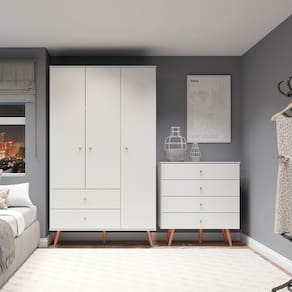 Kit Completo para Quarto Guarda-Roupa e Cômoda Retrô MDP Branco Menu Móveis