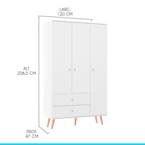 Dimens?es do Guarda Roupa Retr? 120x206cm 3 Portas 2 Gavetas: