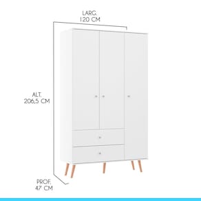 Dimens?es do Guarda-Roupa: Altura: 206,5 cm Largura: 120 cm Profundidade: 47 cm Peso: 69,6 kg