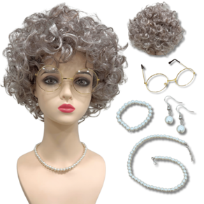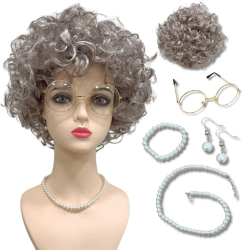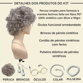 Kit completo peruca da vovó vovozinha idosa cacheada loira