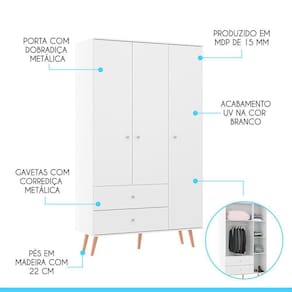 Dimensoes do Guarda-Roupa: Altura: 206,5 cm Largura: 120 cm Profundidade: 47 cm Peso: 69,6 kg