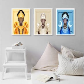 Kit composição 3 quadros orixás- iemanjá iansã oxalá 33x24cm Moldura: madeira branca Informações do produto tire todas as suas dúvidas no descritivo abaixo: decoração para quarto, sala, cozinha, escritório, área gourmet e muito mais. Chega de paredes vazias medidas - cada peça tem 33x24cm a4 . Material do papel - papel fotográfico brilhante de altíssima resolução acabamento - todos os quadros são acompanhados de uma película de acetato para proteção da imagem. - os quadros são embalados de forma segura com plástico bolha com camada dupla de acordo com o tamanho dos quadros. Garantia - garantia de 3 meses. Meu quadro chegou. Como posso fixá-lo Você precisa apenas de um martelo e um prego, pois os quadros já vão acompanhados de penduradores. Esta é a forma mais indicada. Caso prefira, você pode utilizar uma fita dupla face neste caso, sugerimos de alta qualidade para evitar que descole e seu quadro caia . Como posso limpar meu quadro A limpeza é feita como um móvel comum da sua casa. Apenas um pano seco ou espanador são suficientes para tal