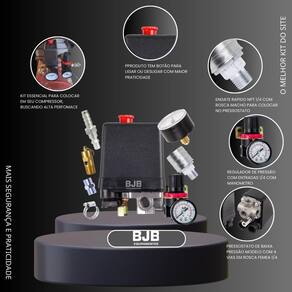 Aplicações: Ideal para compressores de ar em oficinas mecânicas, marcenarias, construção civil e outras atividades que demandam ar comprimido. benefícios: Fácil instalação e operação. de precisão e segurança.Aumento da vida útil do compressor.Versatilidade de uso em diversas aplicações. Garanta já o seu kit e mantenha seu compressor operando com eficiência e segurança Este produto trata-se de uma peça COMPATÍVEL vendida com a marca BJB equipamentos A mesma NÃO se enquadra, NÃO se configura a um produto de outra marca ou fabricante que não seja a empresa citada acima
