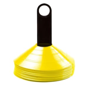 Feitos em plástico durável e na cor amarela para alta visibilidade, os cones são leves e fáceis de transportar, permitindo que você monte seu percurso de treino em qualquer lugar.
