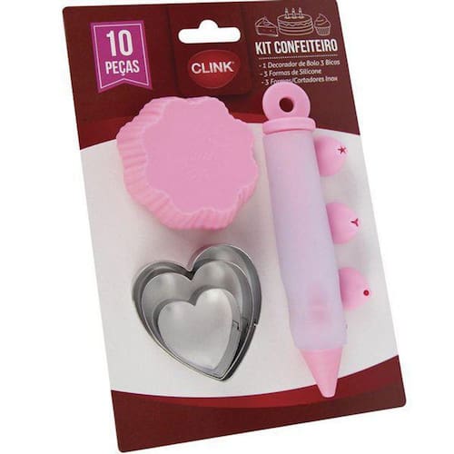 Descrição Contém: 01 Kit Confeiteiro 10 peças Clink Que tal você ter aquele um Kit confeiteiro, onde você poder por em prática suas preparações de variados doces. Característica: Esse kit vem os seguintes itens: - 1 Bisnaga - 3 Bicos de Confeitar - 3 Forminhas de Silicone 6,5cm x 7cm - 3 Cortadores de Inox 7,50cm / 6cm / 4cm Material: - Plástico e Silicone -todas as informações divulgadas são de responsabilidade do fabricante/fornecedor. -imagens ilustrativas, as cores podem alterar conforme o seu monitor. -medidas aproximadas.