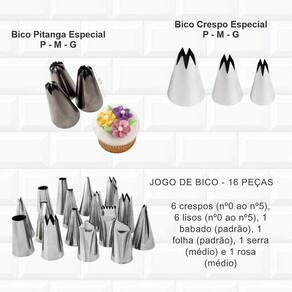 Kit confeiteiro especial para aqueles que estão iniciando no ramo da confeitaria ou para quem quer renovar seus utensílios. Conteúdo: - bailarina giratória - polipropileno - 30 cm branca - kit formas redonda 3 peças 15, 20 e 25 cm - jogo de bico inox 16 pç: 6 crespos nº0 ao nº5 , 6 lisos nº0 ao nº5 , 1 babado padrão , 1 folha padrão , 1 serra médio e 1 rosa médio - manga descartável 6 unid. - kit bico 1m 3 peças p m g - kit bico 1b 3 peças p m g Não encontrou o que procura Nos envie uma mensagem com sua sugestão faremos o possível para encontrar e publicar o que deseja com um valor competitivo, assim você poderá colocar todos os produtos no carrinho e enviaremos tudo em um único . A isamar é uma empresa voltada ao segmento de panificação e confeitaria. Atuamos no mercado desde 1978, criando parcerias e impulsionando negócios. Desenvolvemos produtos de alta qualidade para que possamos atender bem cada cliente, o que faz de cada um, parceiros e amigos. Atuamos em todo o território nacional oferecendo soluções completas para o setor. Obrigado pela visita e boas compras Marca: Não Informado Ean: 7894369007380