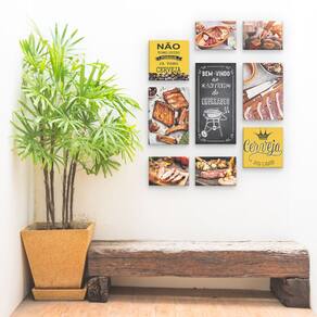 KIT 9 PLACAS DECORATIVAS Decorar a casa é sempre um momento pra lá de especial Você pode ousar na decoração e deixar sua casa ainda mais alegre e bonita com nossos kits. TAMANHO & INSTALAÇÃO Tamanho total: 64 cm comprimento X 84 cm altura 1 peça central: 20x40 cm 2 peças laterais: 20x28 cm 2 peças laterais: 20x20 cm 2 peças acima: 14x20 cm 2 peças abaixo: 14x20 cm Espaçamento entre as peças: 2 cm INSTALAÇÃO A instalação é bem simples, enviamos com fita dupla face para melhor fixação Não precisa furar a parede . Assim evitando furos e estragos na sua parede. IMPRESSÃO & ACABAMENTO Nossos quadros e placas são impressos em adesivo de alta qualidade, aplicado em MDF com espessura de 6mm. Não necessita de moldura.