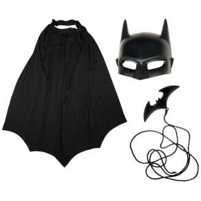 Máscara Misteriosa: Deixe a identidade secreta fluir com uma máscara autêntica do Batman. Capa Poderosa: Domine o visual épico do Cavaleiro das Trevas com uma capa preta imponente. Bat-Gancho Aventureiro: Explore novas alturas e desafie a gravidade com o icônico Bat-Gancho. Shurikens Duplas: Esteja preparado para qualquer desafio com duas Shurikens afiadas e prontas para ação. Bat-rang Arremessável: Pratique suas habilidades de arremesso com o Bat-rang, o símbolo da justiça voando pelos céus. Detalhes do Produto: