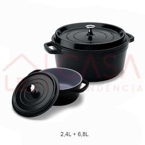 Com capacidades de 2,4 litros e 6,8 litros, as caçarolas possuem tamanhos ideais para atender às suas necessidades na cozinha. Seu corpo em alumínio fundido e pintura resistente a altas temperaturas garantem sua durabilidade e eficiência.