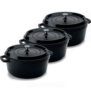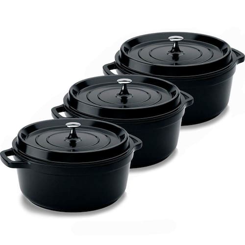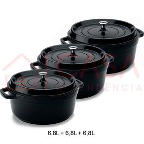Kit com 3 Caçarolas Hercules na cor Preto sendo: 1 Caçarola de 6,8 Litros + 1 Caçarola de 6,8 Litros + 1 Caçarola de 6,8 Litros