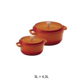 - Capacidade: 3 Litros + 4,3 Litros - Tamanho: 3 Litros 21,3x9cm + 4,3 Litros 25,4x11cm - Corpo Em Alumínio Fundido - Antiaderente Cerâmico - Pintura Resistente A Altas Temperaturas - Tampa Com Sistema Pinga Gotas - Fundo Especial Para Todos Os Tipos De Fogão Fogão Convencional a gás, Indução e Halogênio - Certificado Inmetro 008119/2019
