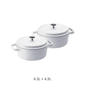 - Capacidade: 4,3 Litros + 4,3 Litros - Tamanho: 4,3 Litros 25,4x11cm + 4,3 Litros 25,4x11cm - Corpo Em Alumínio Fundido - Antiaderente Cerâmico - Pintura Resistente A Altas Temperaturas - Tampa Com Sistema Pinga Gotas - Fundo Especial Para Todos Os Tipos De Fogão Fogão Convencional a gás, Indução e Halogênio - Certificado Inmetro 008119/2019