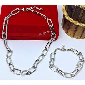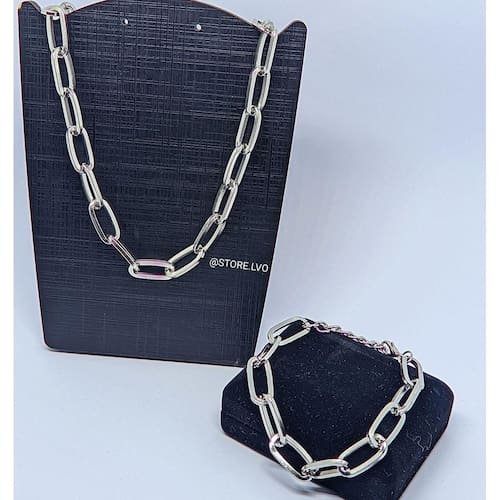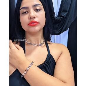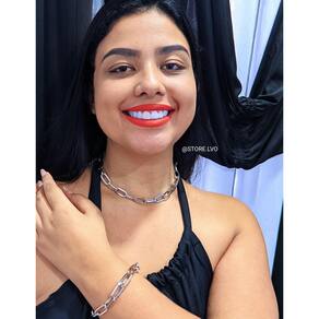 Kit Conjunto Colar Choker e Pulseira Elo Retangular Corrente Grossa Folheado Ouro 18k Inspiração Blogueira Moda Luxo Presente