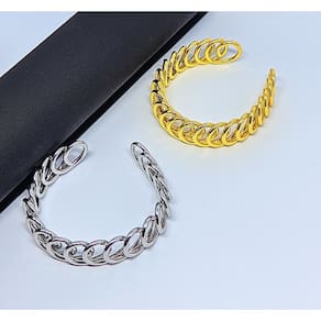 Kit Conjunto Colar Choker Feminino e Pulseira Elos Rígido Geométrico vazado Folheado Ouro Luxo Dourado e Prata Tendência - Cor: Dourado