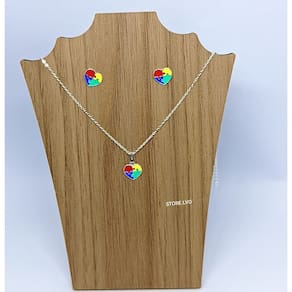 ESPECIFICAÇÃO COLAR : Produtos de alto padrão de qualidade todo Folheado De metais nacionais com proteção de verniz antialérgico. MEDIDAS Colar: 40 cm + 5CM Regulagem Brincos: 1,2 Cm Pingente: 1,4 Cm - Marca: LVO - Modelo: Coração quebra cabeça - Modelo Fecho: Boia - Peso: 8Gr