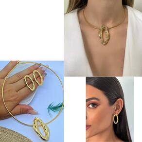 Kit Conjunto Colar e Brincos Choker Aro Liso Orgânico Oval Vazado Folheado Ouro Dourado Prata Descubra a elegância atemporal com o nosso Kit Conjunto Colar e Brincos. Este conjunto, que inclui um colar choker e um par de brincos, é a escolha perfeita para quem valoriza acessórios sofisticados e modernos. Detalhes do Produto Colar