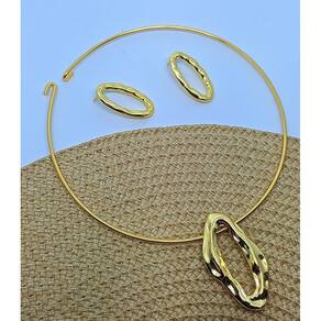 1 Choker Aro Rigido com Pingente 1 Par de Brincos