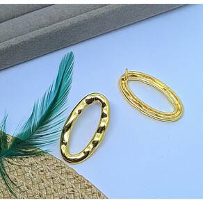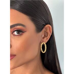 Estilo: Brinco liso com detalhes orgânicos, levemente amassado e vazado no centro. Dimensões: Altura de 3,3 cm e largura de 1,8 cm. Material: Folheado a Ouro 18k com verniz cataforético. Conforto: Extremamente leves e hipoalergênicos, sem níquel, ideais para uso diário.