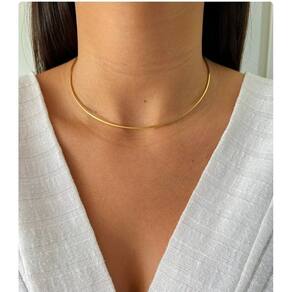 Kit Conjunto Colar e Brincos Choker Aro Liso Orgânico Oval Vazado Folheado Ouro Dourado Prata