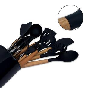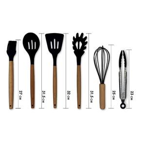 - Itens em silicone, podem ficar apoiados na panela direto no fogão, pois suportam altas temperaturas até 230C. - Não riscam suas panelas - Fabricação de alto nível, resistência e durabilidade garantida - Super Lindo com design perfeito para preparar e servir suas receitas - Podem ir na lava-louças - Livre de BPA Marca: Kitchenware Set