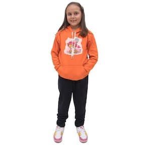 Kit Conjunto Infantil Blusa Moletom Canguru Menina Estampa Ursinho e Calça Jogger Com Bolso - Laranja - 14