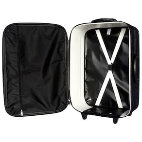 Parte interna: Elástico para prender roupa Bolso interno na tampa Prendedor de roupas Organiza bem a bagagem Estrutura e carrinho Resistente