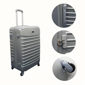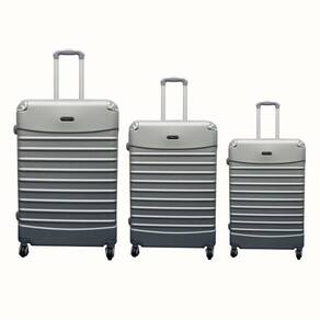 KIT CONJUNTO MALA DE VIAGEM FIBRA RÍGIDA ABS P, M E G COM CADEADO E RODINHAS GIRO 360 TRAVEL LOVE CINZA