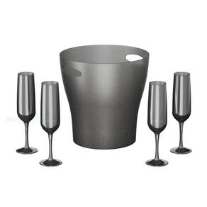 Kit Cooler Celebration + 4 Taças Espumante 7L Prata Coza