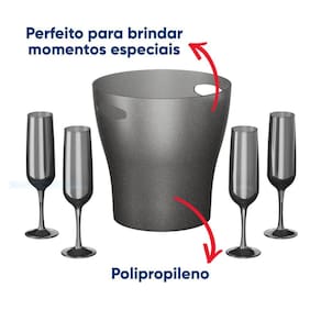 Palavras-chave: Kit Celebration Cooler Balde Bebidas E 4 Taças Coza, cooler, balde de bebidas, taças, espumante, polipropileno, capacidade 7 litros, design moderno, marca Coza.