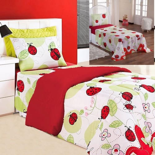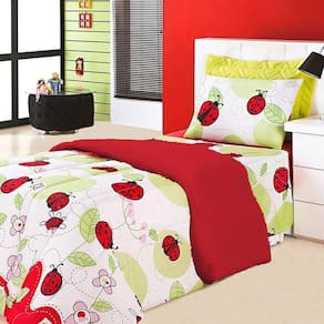 Kit coordenado Edredom com Lençol Solteiro alegria com estampas vibrantes