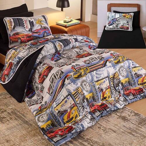 Kit Coordenado Edredom com Lençol Solteiro Mymo com estampas vibrantes