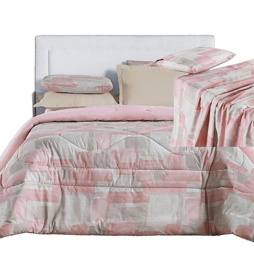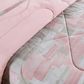 Kit Coordenado Edredom E Lençol Sensuale Super King Quadri 5 Peças - 80% Algodão, 20% Poliéster - Blush