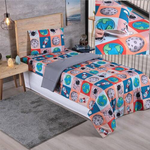 Kit Coordenado Edredom com Lençol Solteiro Alegria - Astronauta - 100% Poliéster Kit coordenado Edredom com Lençol Solteiro alegria com estampas vibrantes