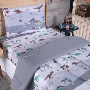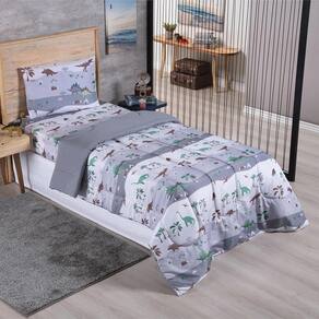 Kit Coordenado Edredom com Lençol Solteiro Alegria - Dinossauro - 100% Poliéster