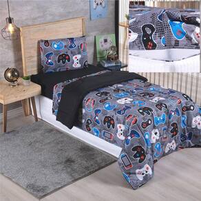 Kit Coordenado Edredom com Lençol Solteiro Alegria - Play game - 100% Poliéster