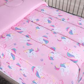 Kit Coordenado Edredom com Lençol Solteiro Alegria - Unicórnio - 100% Poliéster Kit coordenado Edredom com Lençol Solteiro alegria com estampas vibrantes