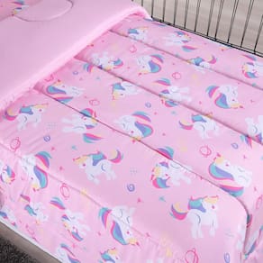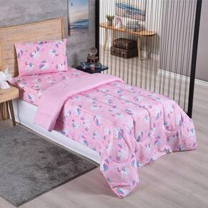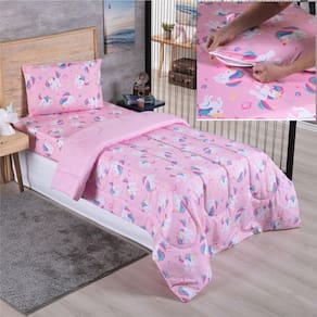 Kit Coordenado Edredom com Lençol Solteiro Alegria - Unicórnio - 100% Poliéster
