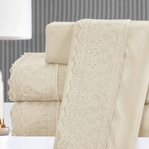 Kit Coordenado Grécia Cobre Leito + Jogo De Cama Queen Bordado Inglês 300 Fios - 7 Peças - Bege