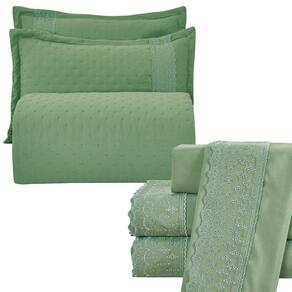 - Cobre leito + jogo de lençol: praticidade e beleza em um só kit