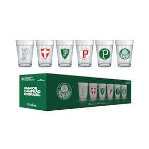 Copo Americano Palmeiras 190 ml Luva com 6 unidColeção inspirada nos torcedores do Alviverde. Produzido em vidro com o tradicional formato americano, o conjunto une os principais escudos do time. Ideal para servir Cervejas e Chopes. Contém embalagem personalizada, sendo uma excelente opção para presentes.Produto Oficial licenciado pelo Palmeiras, possuindo selo de autenticidade para agradar os fãs mais exigentes.Dica de uso e preservação:1 - Lavar com esponja macia e detergente neutro, seguido de pano limpo e seco.2 - Não utilizar produtos químicos ou abrasivos3 - Produto de vidro, manuseie com cuidado.4 - Choque e impactos podem provocar rachaduras ou quebras.