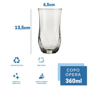 kit Copo Ópera Duravel 360ml Redondo Transparente Nadir 6Un