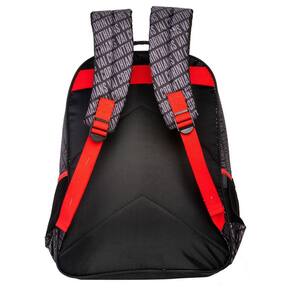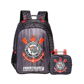 Mochila de costas: Escudo na frente em pvc patch Fechamento por zíper resistente Cursor personalizado Bolsos laterais para garrafa Alças de costas acolchoadas e ajustáveis Zíper bicolor com dentes de nylon super resistentes, que unem durabilidade e estilo. Cobre zíper que protege e aumenta a durabilidade do fechamento. Estampa e forro personalizados Dimensões: Largura: 30cm Altura: 40cm Comprimento: 15cm Lancheira térmica: