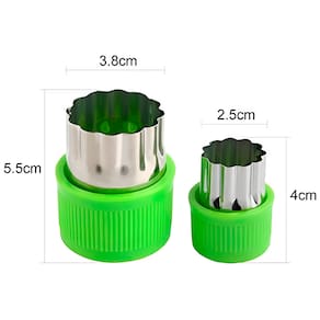 CARACTERÍSTICAS PRINCIPAIS:- Adicione diversão e criatividade na hora de preparar seus alimentos.- Com os diferentes moldes, você pode cortar frutas, legumes, queijos e muito mais. - Fácil de usar, é perfeito para tornar as refeições mais atrativas.- Quantidade: 9pçs.- Material: Inox e Plástico- Tamanho Peças Pequenas: 4 x 2,5cm.- Tamanho Peça Grande: 5,5 x 3,8cm.- Peso do Kit: 119g.TEMOS SEU PRODUTO EM ESTOQUEENVIAMOS SEU PEDIDO EM ATÉ 1 DIA ÚTILAPÓS A CONFIRMAÇÃO DO PAGAMENTO.
