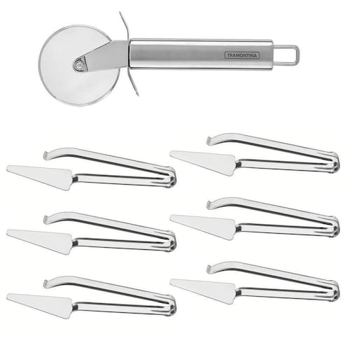 - Desfrute de momentos deliciosos e práticos com o Kit Cortador de Pizza Tramontina Marffim em Aço Inox + Pegador para Pizza Tramontina Utility. O cortador, feito 100% em aço inox, garante cortes perfeitos e rápidos, preservando a beleza e a durabilidade.