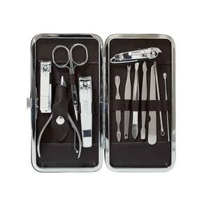 Uso domestico. manicure/pedicure. 1x cortador de unha 45 grau 1x cortador de unha grande; 1x cortador de unha pequeno; 1x alicate 1x tesoura 1x empurrador de ículas 1x lixa; 1x pinça; 1x palito; 3x desencravadores de unha. Peças organizadas em um lindo estojo de zíper.