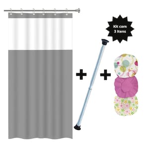 Kit Cortina Box Banheiro + Varão de cortina + 3 Toucas Cor: Cinza Kit Cortina Box Banheiro Antimofo PVC com Visor + Varão Extensível Suporte de cortina 90cm x 1,30m + 3 Toucas de Plástico para banho Transforme seu banheiro com o prático e funcional Kit Cortina para Box Banheiro Antimofo PVC + Varão Extensível Suporte de Cortina. Ideal para proteger o ambiente da água durante o banho, este conjunto combina uma cortina resistente e de fácil limpeza com um suporte ajustável para instalação simples e sem complicações. Características da Cortina: Material Antimofo: Fabricado em PVC de alta qualidade, resistente ao mofo e à umidade, garantindo maior durabilidade e higiene. Fácil de Limpar: Basta passar um pano úmido para manter a cortina sempre limpa e em bom estado. Tamanho Ideal: Cobertura ampla com visor para evitar respingos e manter o banheiro seco. Características do Varão Suporte: Extensível e Ajustável: Comprimento regulável para se adaptar a diferentes tamanhos de caixas ou espaços ajuste entre 90cm e 1,30m . Fixação sem Furos: Sistema que dispensa furadeiras, facilitando a instalação e evitando danos à parede ou ao azulejo. Material Resistente: Varão em alumínio com acabamento anticorrosivo, ideal para ambientes úmidos. Pontas Emborrachadas: Fixação segura sem riscos de danos superficiais. Características da Touca de Plástico Impermeável para Banho: Material: Plástico impermeável de alta durabilidade, resistente à água e ao vapor no banho Quantidade: Kit com 3 unidades de toucas para banho Dimensões: Diâmetro aproximado de 25cm, adequado para diferentes tamanhos de cabeça Elástico: Elástico reforçado e macio, ajustável para maior conforto e fixação sem apertar Reutilizável: Pode ser lavado e . Recomenda-se secar ao ar livre após o uso Uso: ideal para banho, tratamentos capilares e proteção contra umidade Benefícios: Praticidade Completa: Kit pronto para uso, com todos os itens necessários para a instalação. Durabilidade e Higiene: Cortina antimofo e varão resistente garantem um conjunto duradouro e de fácil manutenção. Estilo e Funcionalidade: Combina proteção contra respingos com um design moderno que valoriza o banheiro. Especificações Técnicas: Dimensões da Cortina: Aproximadamente 2m de altura x 1,40m de largura Dimensões do Varão: Por ser extensível vai de 90cm a 1,30m de largura. Conteúdo da embalagem: 1 Cortina PVC + 1 Varão extensível + 3 Toucas para banho Marca: Não Informado