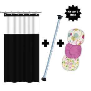Kit Cortina Box Banheiro + Varão de cortina + 3 Toucas Cor: Preta Kit Cortina Box Banheiro Antimofo PVC com Visor + Varão Extensível Suporte de cortina 90cm x 1,30m + 3 Toucas de Plástico para banho Transforme seu banheiro com o prático e funcional Kit Cortina para Box Banheiro Antimofo PVC + Varão Extensível Suporte de Cortina. Ideal para proteger o ambiente da água durante o banho, este conjunto combina uma cortina resistente e de fácil limpeza com um suporte ajustável para instalação simples e sem complicações. Características da Cortina: Material Antimofo: Fabricado em PVC de alta qualidade, resistente ao mofo e à umidade, garantindo maior durabilidade e higiene. Fácil de Limpar: Basta passar um pano úmido para manter a cortina sempre limpa e em bom estado. Tamanho Ideal: Cobertura ampla com visor para evitar respingos e manter o banheiro seco. Características do Varão Suporte: Extensível e Ajustável: Comprimento regulável para se adaptar a diferentes tamanhos de caixas ou espaços ajuste entre 90cm e 1,30m . Fixação sem Furos: Sistema que dispensa furadeiras, facilitando a instalação e evitando danos à parede ou ao azulejo. Material Resistente: Varão em alumínio com acabamento anticorrosivo, ideal para ambientes úmidos. Pontas Emborrachadas: Fixação segura sem riscos de danos superficiais. Características da Touca de Plástico Impermeável para Banho: Material: Plástico impermeável de alta durabilidade, resistente à água e ao vapor no banho Quantidade: Kit com 3 unidades de toucas para banho Dimensões: Diâmetro aproximado de 25cm, adequado para diferentes tamanhos de cabeça Elástico: Elástico reforçado e macio, ajustável para maior conforto e fixação sem apertar Reutilizável: Pode ser lavado e . Recomenda-se secar ao ar livre após o uso Uso: ideal para banho, tratamentos capilares e proteção contra umidade Benefícios: Praticidade Completa: Kit pronto para uso, com todos os itens necessários para a instalação. Durabilidade e Higiene: Cortina antimofo e varão resistente garantem um conjunto duradouro e de fácil manutenção. Estilo e Funcionalidade: Combina proteção contra respingos com um design moderno que valoriza o banheiro. Especificações Técnicas: Dimensões da Cortina: Aproximadamente 2m de altura x 1,40m de largura Dimensões do Varão: Por ser extensível vai de 90cm a 1,30m de largura. Conteúdo da embalagem: 1 Cortina PVC + 1 Varão extensível + 3 Toucas para banho Marca: Não Informado