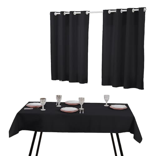 Kit Cortina Para Cozinha E Toalha De Mesa 6 Cadeiras Preto Kit de Cozinha Cortina e Toalha de Mesa 6 lugares