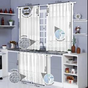 Itens inclusos: 1 cortina de pia de cozinha tulipa duas partes 1 cortina de janela de cozinha tulipa duas partes Fabricante: soul textil Material: 100% poliéster renda Cortina de janela Tamanho: 1,20x1,10x0,01cm Altura aproximada: 0,01cm Comprimento: 1,20cm Largura: 1,10cm Bandô: 0,40cm Peso: 0,250g Quantidade: duas partes de 1,10cm de largura por 1,20cm de altura Cortina de pia Tamanho: 1,50x0,80x0,01cm Altura aproximada: 0,01cm Comprimento: 0,80cm Largura: 0,75cm Bandô: 0,40cm Peso: 0,100g Quantidade: duas partes de 0,75cm de largura por 0,80cm de altura Mais detalhes: - produzido no brasil; - fabricação industrial com acabamento artesanal; - fácil de instalar; - fácil de lavar; - translúcida; - não acompanha varão; - manutenção fácil. Indicações Nossa cortina possui um apelo clássico e romântico, por esse motivo possui uma estrutura extremamente delicada. Recomendamos a compra em dobro, para que na sobreposição ele fique mais encorpada e franzida ou mais comprida e franzida, se assim desejar. Método de colocação do varão: Primeiramente com a cortina aberta identifique os furos em , dobre os 40cm referente ao bandô na altura da cortina de modo que os furos já existentes na cortina fiquem alinhados um com o outro e insira o varão nos furos. O varão não está incluso neste anúncio Recomenda-se a compra de um varão que tenha no mínimo 2,60m. O varão precisa passar 20cm da largura da janela, sendo 10 cm de cada lado. Tendo o diâmetro de 13mm, que são mais recomendados para cozinha, já é o suficiente, pois nossas cortinas são leves, mas por ela ter os furos com 4cm, nada impede de ela ser Utilizado em varões de 19mm, 28mm e até 32mm.